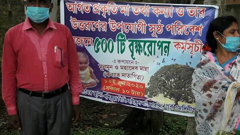 ভারত নিউজ, পাঁশকুড়া – পূর্ব মেদিনীপুরের পাঁশকুড়ার এক শিক্ষক নিজের কন্যা প্রকৃতি’র অন্নপ্রাশনএ অনুষ্ঠানের পরিবর্তে পাঁচশো চারাগাছ বিলি করলেন। শিক্ষকের নাম মহাদেব মান্না। তিনি দাসপুরের পাঁচবেড়িয়া হাইস্কুলের বাংলার শিক্ষক। লকডাউন, সংক্রমণ প্রভৃতি কারণে অন্নপ্রাশনে বড় ধরনের অনুষ্ঠান বা জমায়েত করা যাবেনা তাই মহাদেববাবু এবং তাঁর স্ত্রী মুনমুন সিদ্ধান্ত নেন চারাগাছ বিলি করার। মেয়ের নাম প্রকৃতি তাই এই ধরনের উদ্যোগ নিলে মেয়ের নামের সাথে সেটা মানানসই হবে।