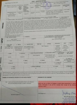 আভ্যন্তরীণ বা বাহ্যিক আঘাত নেই। আরো বলা হয়েছে কেমিক্যাল রিপোর্ট এলে আরো যদি কোনও তথ্য থাকে সেটা জানানো হবে। তবে আপাতদৃষ্টিতে মনে করা হয়েছিল রাজনৈতিক হত্যাকান্ড নয়। তদন্ত হলে বিশদ জানা যাবে। তবে এত রাতে কেন তিনি বাড়ি থেকে বেরিয়ে গিয়েছিলেন, কেউ বা কারা তাকে ডেকে নিয়ে গিয়েছিল কিনা সেগুলো তদন্ত সাপেক্ষ ।