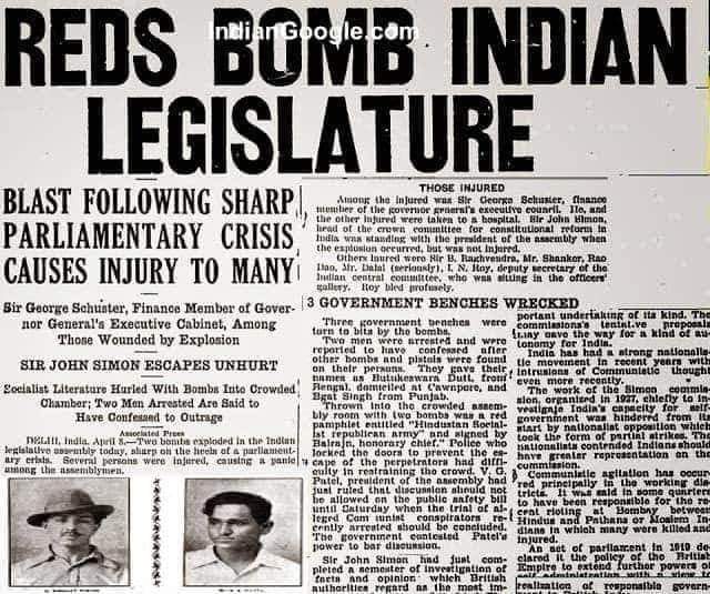 এর বিরুদ্ধে হিন্দুস্থান সোস্যালিষ্ট রিপাবলিকান অ্যাসোসিয়েশন এক গুরুত্বপূর্ণ ভূমিকা পালন করে । ভগৎ সিং মূলত নিয়েছিলেন মুখ্য ভূমিকা তিনি আইনসভায় বোমা নিক্ষেপের মাধ্যমে প্রতিবাদ জানানোর বিষয়ে সিদ্ধান্ত নেন যদিও বোমা দুটি ছোঁড়া হবে কাউকে হত্যা করতে নয় বরং বিদেশী স্বৈরাচারী রাষ্ট্রযন্ত্রকে নিজেদের কথা শোনানোর জন্য |