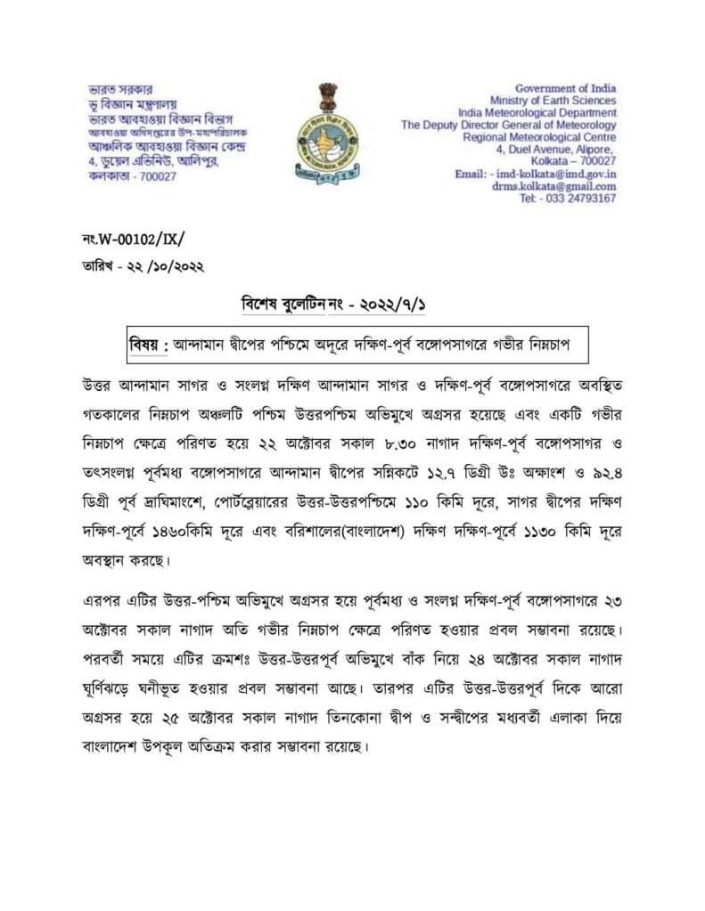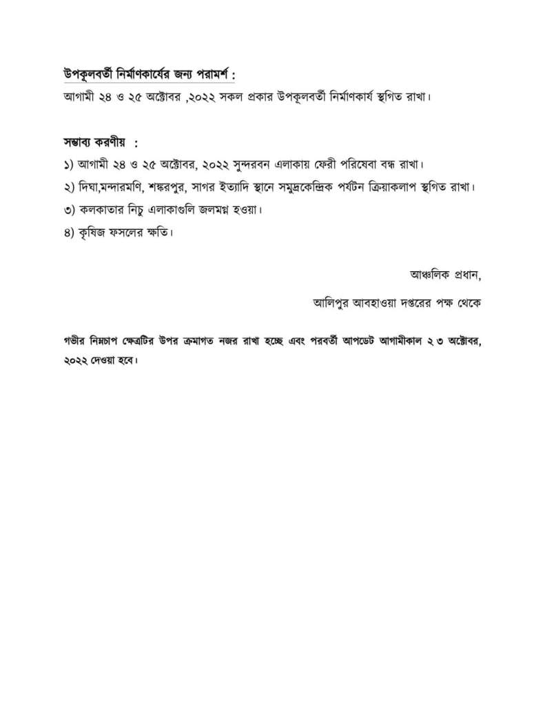 পশ্চিমবঙ্গ, মেদিনীপুর আলিপুর আবহাওয়া দফতরের পক্ষ থেকে আবহাওয়ার পূর্বাভাস । Date: Oct 23, 2022Author: ভারত নিউজ ( অনলাইন নিউজ পেপার ) 0 Comments সৌজন্যে – আলিপুর আবহাওয়া দপ্তর । Share on X (Opens in new window) X Share on Facebook (Opens in new window) Facebook Like Loading...
