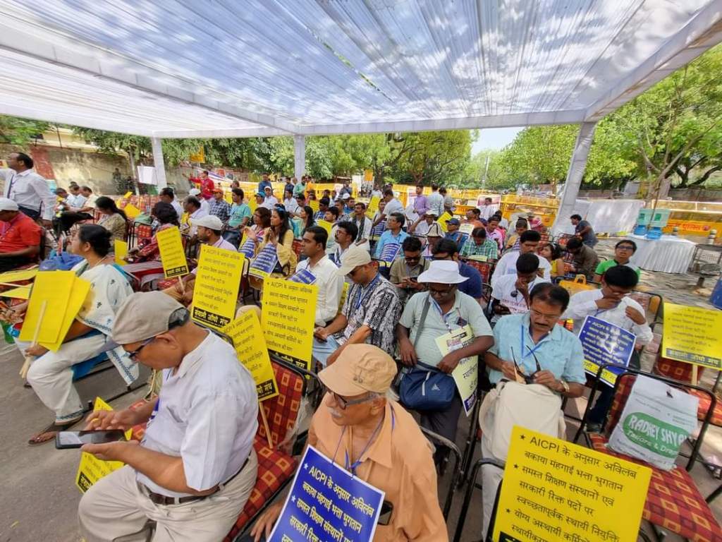রাজ্য সরকারী কর্মচারীদের বকেয়া ডিএ , অস্হায়ী কর্মচারীদের যোগ্যতার ভিত্তিতে স্হায়ীকরণ ও স্বচ্ছ্ব নিয়োগের দাবিতে দিল্লির যন্তরমন্তরে শুরু হয়েছে ধর্ণা । আজ ও কাল চলবে এই ধর্ণা । উপস্থিত রয়েছেন দীর্ঘদিন অনশন করা ভাস্কর ঘোষ ।